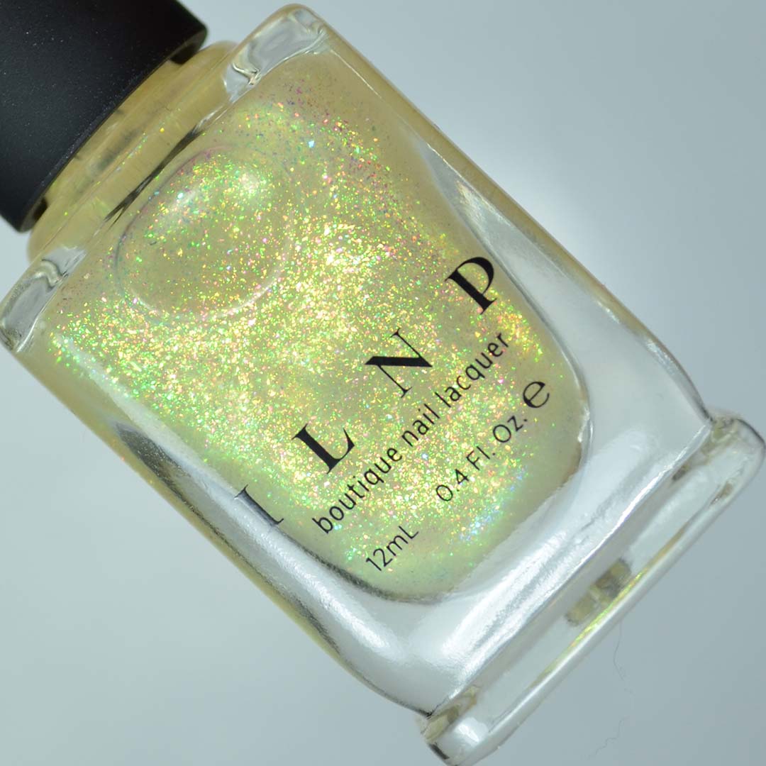 Notes: Toppers like ILNP Head Start will look drastically different over all different nail polish colors. Over Trudith it takes on more of a spring-like iridescence. Over darker colors the blues and greens are more prominent.