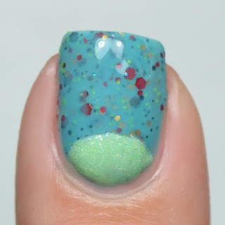Finish: Teal crelly packed with holo, greed, gold, red and black glitter